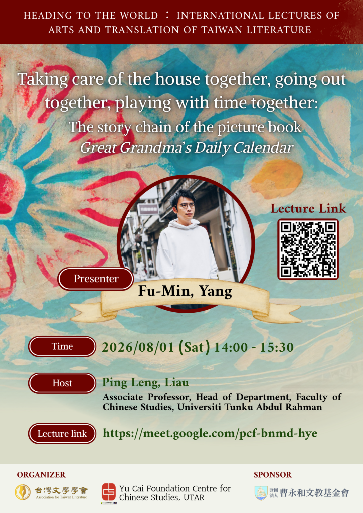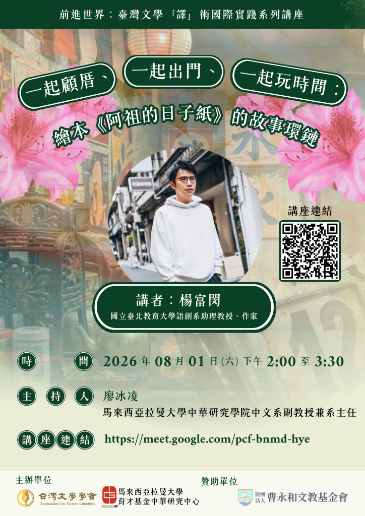 時間:2026年8月1日(六)下午 2:00-3:30(台灣、馬來西亞同步進行)