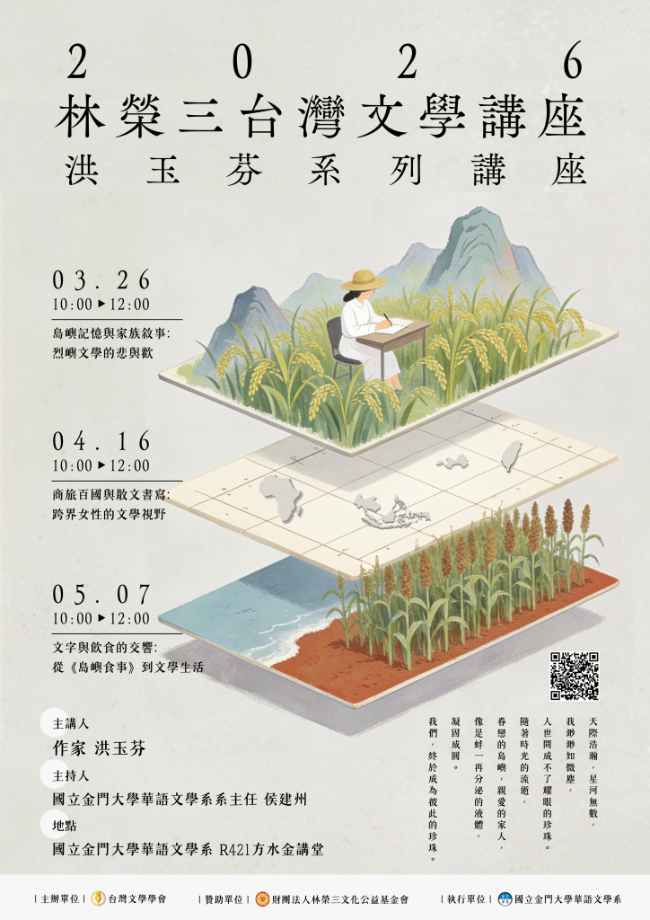【 國立金門大學華語文學系2026年第1期林榮三台灣文學講座】